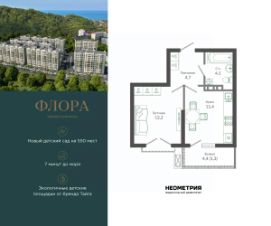 Продается квартира в ЖК "Флора" от федерального девелопера "Неометрия". Это жилой комплекс комфорт-класса в самом зеленом районе Сочи. При проектировании постарались максимально сохранить окружающую флору и фауну. Теплое море, горы, целебные источники, река, близость заповедника все это уже рядом с вами.