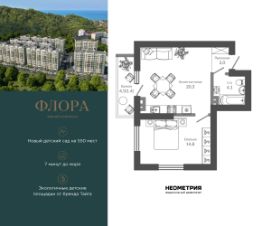 Продается квартира в ЖК "Флора" от федерального девелопера "Неометрия". Это жилой комплекс комфорт-класса в самом зеленом районе Сочи. При проектировании постарались максимально сохранить окружающую флору и фауну. Теплое море, горы, целебные источники, река, близость заповедника все это уже рядом с вами. Жилой комплекс "Флора" это: • 4,5 Га благоустроенной территории от дизайн-бюро Cora * 7 минут до моря на машине • Современные экологичные детские площадки от бренда "Тайга" • Яркие аллеи с цветниками и кустарниками для прогулок и утренних пробежек • Благоустроенная набережная с шезлонгами и перголами • Спортивные зоны для любителей пляжного волейбола, бадминтона и йоги - лапомоечные и колясочные в каждом подъезде - подземный паркинг на 429 мест Собственная управляющая компания с функцией "доверительного управления" Кудепста это прекрасный зеленый оазис, который расположился между историческим центром Сочи и Адлером. Благодаря выгодному местоположению ЖК "Флора" между курортным Адлером и центром Сочи до самых популярных социальных, культурных и развлекательных объектов города можно добраться за считанные минуты: Олимпийский парк. Красная Поляна, аэропорт, жд-вокзал. Кроме того, в шаговой доступности расположена вся необходимая социальная инфраструктура, что удобно для жизни всех членов семьи: • 2 школы; • 3 детских сада; • 3 поликлиники; • 2 фитнес-центра; • 3 магазина и гипермаркета; • спортивная школа • 2 остановки общественного транспорта. На первых этажах комплекса расположены коммерческие помещения пункты выдачи маркетплейсов, кофейни, магазины. В жилом комплексе соблюден принцип сбалансированных и эргономичных планировочных решений: от компактных студий до просторных семейных квартир. В каждой квартире есть балкон, и установлены увеличенные оконные рамы. На 12 этаже повышенной комфортности открываются потрясающие виды на море и национальный парк благодаря панорамному остеклению лоджий. Квартиру можно купить с черновой отделкой или с готовым ремонтом "Прайм", а также с сертификатом на покупку мебели. Приобрести квартиру можно за наличную оплату, в ипотеку, с привлечением средства маткапитала.