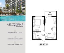 Продается квартира в жилом комплексе бизнес-класса "Лестория". В составе ЖК предусмотрена собственная аквазона площадью 473 квадратных метра с двумя подогреваемыми бассейнами, что соответствуют стандартам бизнес-класса. Аквазона объединяет взрослый и детский бассейны. В welcome-zone к услугам посетителей шезлонги и все необходимые принадлежности. Раздевалки с душевыми комнатами, инфракрасная сауна — здесь все предусмотрено для комфортного отдыха и полного расслабления. Для водного комплекса продуман отдельный вход, оборудованный системой контроля и управления доступом (СКУД). Аквазона только часть уникальной инфраструктуры "Лестории", которая включает в себя также благоустроенную территорию с пятьюдесятью функциональными зонами для прогулок, отдыха и занятий спортом, видовые террасы на крышах для отдыха, работы и встреч с друзьями, а также пространство набережной Кудепсты с шезлонгами и перголами. Жилой комплекс "Лестория" состоит из шести домов высотностью от 15 до 17 этажей, окружённых зеленым массивом национального парка. На придомовой территории для жителей предусмотрены закрытые дворы с круглосуточным видеонаблюдением, активити-центр для детей и подростков, тихие зоны для отдыха и медитации. На крышах домов будут созданы зеленые террасы для наслаждения прекрасными видами на море и горы. В проекте предусмотрены разные варианты отделки квартир под потребности покупателей. Тем, кто хочет воплотить в жизнь собственные интерьерные задумки, подойдут квартиры без ремонта. Для комфортной жизни и отдыха в комплексе будет работать круглосуточный консьерж-сервис уровня 5*, который с легкостью закроет все ежедневные потребности: от заказа продуктов и встречи гостей в аэропорту до выгула и дрессировки питомца. К услугам жителей ЖК "Лестория" — собственная управляющая компания, для инвесторов предоставляются услуги доверительного управления.
