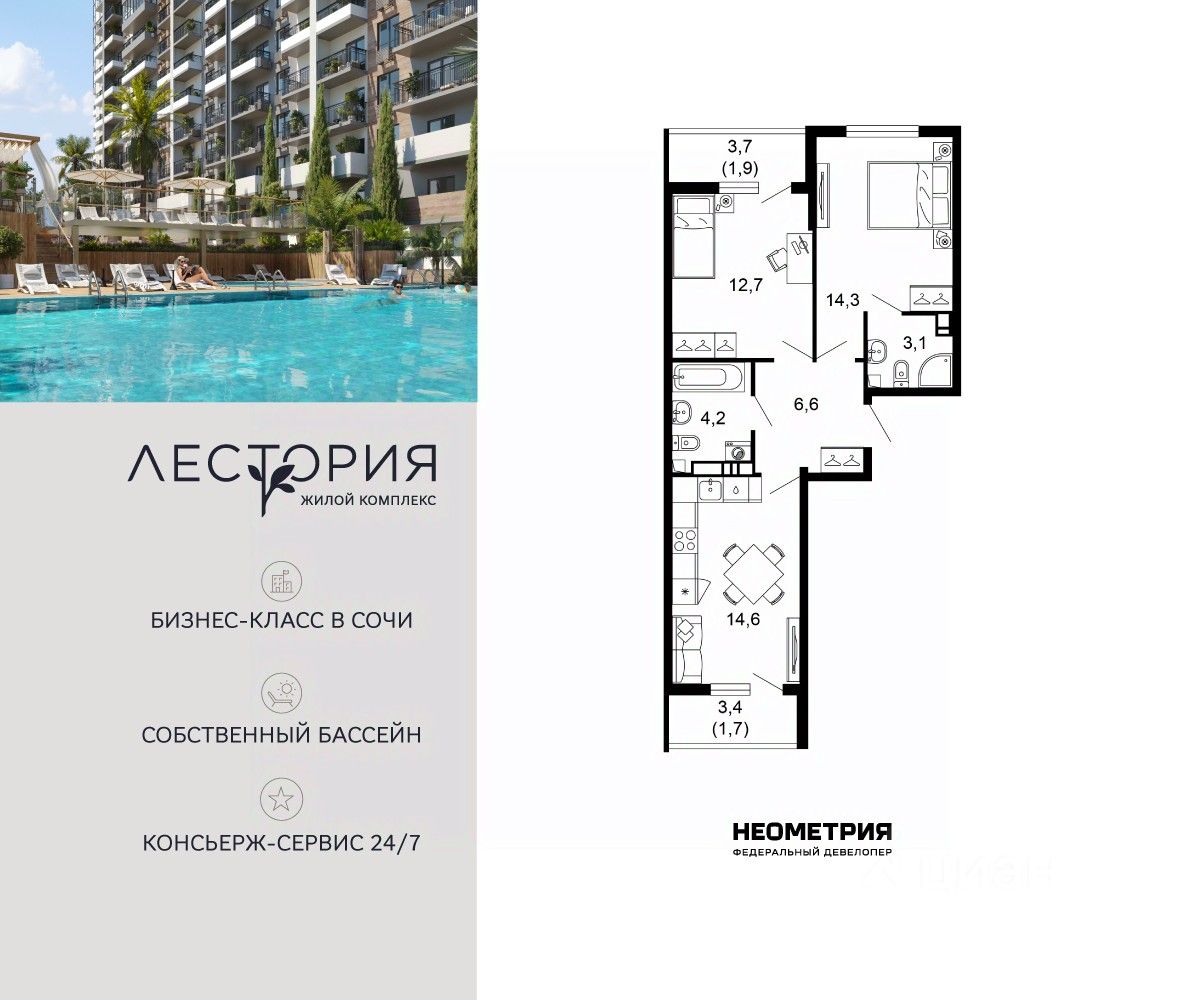 Продается квартира в жилом комплексе бизнес-класса "Лестория". В составе ЖК предусмотрена собственная аквазона площадью 473 квадратных метра с двумя подогреваемыми бассейнами, что соответствуют стандартам бизнес-класса. Аквазона объединяет взрослый и детский бассейны. В welcome-zone к услугам посетителей шезлонги и все необходимые принадлежности. Раздевалки с душевыми комнатами, инфракрасная сауна — здесь все предусмотрено для комфортного отдыха и полного расслабления. Для водного комплекса продуман отдельный вход, оборудованный системой контроля и управления доступом (СКУД). Аквазона только часть уникальной инфраструктуры "Лестории", которая включает в себя также благоустроенную территорию с пятьюдесятью функциональными зонами для прогулок, отдыха и занятий спортом, видовые террасы на крышах для отдыха, работы и встреч с друзьями, а также пространство набережной Кудепсты с шезлонгами и перголами. Жилой комплекс "Лестория" состоит из шести домов высотностью от 15 до 17 этажей, окружённых зеленым массивом национального парка. На придомовой территории для жителей предусмотрены закрытые дворы с круглосуточным видеонаблюдением, активити-центр для детей и подростков, тихие зоны для отдыха и медитации. На крышах домов будут созданы зеленые террасы для наслаждения прекрасными видами на море и горы. В проекте предусмотрены разные варианты отделки квартир под потребности покупателей. Тем, кто хочет воплотить в жизнь собственные интерьерные задумки, подойдут квартиры без ремонта. Для комфортной жизни и отдыха в комплексе будет работать круглосуточный консьерж-сервис уровня 5*, который с легкостью закроет все ежедневные потребности: от заказа продуктов и встречи гостей в аэропорту до выгула и дрессировки питомца. К услугам жителей ЖК "Лестория" — собственная управляющая компания, для инвесторов предоставляются услуги доверительного управления.