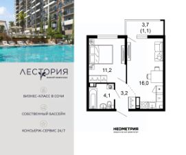 Продается квартира в жилом комплексе бизнес-класса "Лестория". В составе ЖК предусмотрена собственная аквазона площадью 473 квадратных метра с двумя подогреваемыми бассейнами, что соответствуют стандартам бизнес-класса. Аквазона объединяет взрослый и детский бассейны. В welcome-zone к услугам посетителей шезлонги и все необходимые принадлежности. Раздевалки с душевыми комнатами, инфракрасная сауна — здесь все предусмотрено для комфортного отдыха и полного расслабления. Для водного комплекса продуман отдельный вход, оборудованный системой контроля и управления доступом (СКУД). Аквазона только часть уникальной инфраструктуры "Лестории", которая включает в себя также благоустроенную территорию с пятьюдесятью функциональными зонами для прогулок, отдыха и занятий спортом, видовые террасы на крышах для отдыха, работы и встреч с друзьями, а также пространство набережной Кудепсты с шезлонгами и перголами. Жилой комплекс "Лестория" состоит из шести домов высотностью от 15 до 17 этажей, окружённых зеленым массивом национального парка. На придомовой территории для жителей предусмотрены закрытые дворы с круглосуточным видеонаблюдением, активити-центр для детей и подростков, тихие зоны для отдыха и медитации. На крышах домов будут созданы зеленые террасы для наслаждения прекрасными видами на море и горы. В проекте предусмотрены разные варианты отделки квартир под потребности покупателей. Тем, кто хочет воплотить в жизнь собственные интерьерные задумки, подойдут квартиры без ремонта. Для комфортной жизни и отдыха в комплексе будет работать круглосуточный консьерж-сервис уровня 5*, который с легкостью закроет все ежедневные потребности: от заказа продуктов и встречи гостей в аэропорту до выгула и дрессировки питомца. К услугам жителей ЖК "Лестория" — собственная управляющая компания, для инвесторов предоставляются услуги доверительного управления.