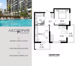 Продается квартира в жилом комплексе бизнес-класса "Лестория". В составе ЖК предусмотрена собственная аквазона площадью 473 квадратных метра с двумя подогреваемыми бассейнами, что соответствуют стандартам бизнес-класса. Аквазона объединяет взрослый и детский бассейны. В welcome-zone к услугам посетителей шезлонги и все необходимые принадлежности. Раздевалки с душевыми комнатами, инфракрасная сауна — здесь все предусмотрено для комфортного отдыха и полного расслабления. Для водного комплекса продуман отдельный вход, оборудованный системой контроля и управления доступом (СКУД). Аквазона только часть уникальной инфраструктуры "Лестории", которая включает в себя также благоустроенную территорию с пятьюдесятью функциональными зонами для прогулок, отдыха и занятий спортом, видовые террасы на крышах для отдыха, работы и встреч с друзьями, а также пространство набережной Кудепсты с шезлонгами и перголами. Жилой комплекс "Лестория" состоит из шести домов высотностью от 15 до 17 этажей, окружённых зеленым массивом национального парка. На придомовой территории для жителей предусмотрены закрытые дворы с круглосуточным видеонаблюдением, активити-центр для детей и подростков, тихие зоны для отдыха и медитации. На крышах домов будут созданы зеленые террасы для наслаждения прекрасными видами на море и горы. В проекте предусмотрены разные варианты отделки квартир под потребности покупателей. Тем, кто хочет воплотить в жизнь собственные интерьерные задумки, подойдут квартиры без ремонта. Для комфортной жизни и отдыха в комплексе будет работать круглосуточный консьерж-сервис уровня 5*, который с легкостью закроет все ежедневные потребности: от заказа продуктов и встречи гостей в аэропорту до выгула и дрессировки питомца. К услугам жителей ЖК "Лестория" — собственная управляющая компания, для инвесторов предоставляются услуги доверительного управления.