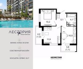 Продается квартира в жилом комплексе бизнес-класса "Лестория". В составе ЖК предусмотрена собственная аквазона площадью 473 квадратных метра с двумя подогреваемыми бассейнами, что соответствуют стандартам бизнес-класса. Аквазона объединяет взрослый и детский бассейны. В welcome-zone к услугам посетителей шезлонги и все необходимые принадлежности. Раздевалки с душевыми комнатами, инфракрасная сауна — здесь все предусмотрено для комфортного отдыха и полного расслабления. Для водного комплекса продуман отдельный вход, оборудованный системой контроля и управления доступом (СКУД). Аквазона только часть уникальной инфраструктуры "Лестории", которая включает в себя также благоустроенную территорию с пятьюдесятью функциональными зонами для прогулок, отдыха и занятий спортом, видовые террасы на крышах для отдыха, работы и встреч с друзьями, а также пространство набережной Кудепсты с шезлонгами и перголами. Жилой комплекс "Лестория" состоит из шести домов высотностью от 15 до 17 этажей, окружённых зеленым массивом национального парка. На придомовой территории для жителей предусмотрены закрытые дворы с круглосуточным видеонаблюдением, активити-центр для детей и подростков, тихие зоны для отдыха и медитации. На крышах домов будут созданы зеленые террасы для наслаждения прекрасными видами на море и горы. В проекте предусмотрены разные варианты отделки квартир под потребности покупателей. Тем, кто хочет воплотить в жизнь собственные интерьерные задумки, подойдут квартиры без ремонта. Для комфортной жизни и отдыха в комплексе будет работать круглосуточный консьерж-сервис уровня 5*, который с легкостью закроет все ежедневные потребности: от заказа продуктов и встречи гостей в аэропорту до выгула и дрессировки питомца. К услугам жителей ЖК "Лестория" — собственная управляющая компания, для инвесторов предоставляются услуги доверительного управления.