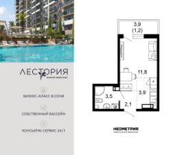 Продается квартира в жилом комплексе бизнес-класса "Лестория". В составе ЖК предусмотрена собственная аквазона площадью 473 квадратных метра с двумя подогреваемыми бассейнами, что соответствуют стандартам бизнес-класса. Аквазона объединяет взрослый и детский бассейны. В welcome-zone к услугам посетителей шезлонги и все необходимые принадлежности. Раздевалки с душевыми комнатами, инфракрасная сауна — здесь все предусмотрено для комфортного отдыха и полного расслабления. Для водного комплекса продуман отдельный вход, оборудованный системой контроля и управления доступом (СКУД). Аквазона только часть уникальной инфраструктуры "Лестории", которая включает в себя также благоустроенную территорию с пятьюдесятью функциональными зонами для прогулок, отдыха и занятий спортом, видовые террасы на крышах для отдыха, работы и встреч с друзьями, а также пространство набережной Кудепсты с шезлонгами и перголами. Жилой комплекс "Лестория" состоит из шести домов высотностью от 15 до 17 этажей, окружённых зеленым массивом национального парка. На придомовой территории для жителей предусмотрены закрытые дворы с круглосуточным видеонаблюдением, активити-центр для детей и подростков, тихие зоны для отдыха и медитации. На крышах домов будут созданы зеленые террасы для наслаждения прекрасными видами на море и горы. В проекте предусмотрены разные варианты отделки квартир под потребности покупателей. Тем, кто хочет воплотить в жизнь собственные интерьерные задумки, подойдут квартиры без ремонта. Для комфортной жизни и отдыха в комплексе будет работать круглосуточный консьерж-сервис уровня 5*, который с легкостью закроет все ежедневные потребности: от заказа продуктов и встречи гостей в аэропорту до выгула и дрессировки питомца. К услугам жителей ЖК "Лестория" — собственная управляющая компания, для инвесторов предоставляются услуги доверительного управления.