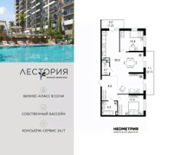 Продается квартира в жилом комплексе бизнес-класса "Лестория". В составе ЖК предусмотрена собственная аквазона площадью 473 квадратных метра с двумя подогреваемыми бассейнами, что соответствуют стандартам бизнес-класса. Аквазона объединяет взрослый и детский бассейны. В welcome-zone к услугам посетителей шезлонги и все необходимые принадлежности. Раздевалки с душевыми комнатами, инфракрасная сауна — здесь все предусмотрено для комфортного отдыха и полного расслабления. Для водного комплекса продуман отдельный вход, оборудованный системой контроля и управления доступом (СКУД). Аквазона только часть уникальной инфраструктуры "Лестории", которая включает в себя также благоустроенную территорию с пятьюдесятью функциональными зонами для прогулок, отдыха и занятий спортом, видовые террасы на крышах для отдыха, работы и встреч с друзьями, а также пространство набережной Кудепсты с шезлонгами и перголами. Жилой комплекс "Лестория" состоит из шести домов высотностью от 15 до 17 этажей, окружённых зеленым массивом национального парка. На придомовой территории для жителей предусмотрены закрытые дворы с круглосуточным видеонаблюдением, активити-центр для детей и подростков, тихие зоны для отдыха и медитации. На крышах домов будут созданы зеленые террасы для наслаждения прекрасными видами на море и горы. В проекте предусмотрены разные варианты отделки квартир под потребности покупателей. Тем, кто хочет воплотить в жизнь собственные интерьерные задумки, подойдут квартиры без ремонта. Для комфортной жизни и отдыха в комплексе будет работать круглосуточный консьерж-сервис уровня 5*, который с легкостью закроет все ежедневные потребности: от заказа продуктов и встречи гостей в аэропорту до выгула и дрессировки питомца. К услугам жителей ЖК "Лестория" — собственная управляющая компания, для инвесторов предоставляются услуги доверительного управления.