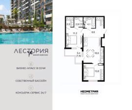 Продается квартира в жилом комплексе бизнес-класса "Лестория". В составе ЖК предусмотрена собственная аквазона площадью 473 квадратных метра с двумя подогреваемыми бассейнами, что соответствуют стандартам бизнес-класса. Аквазона объединяет взрослый и детский бассейны. В welcome-zone к услугам посетителей шезлонги и все необходимые принадлежности. Раздевалки с душевыми комнатами, инфракрасная сауна — здесь все предусмотрено для комфортного отдыха и полного расслабления. Для водного комплекса продуман отдельный вход, оборудованный системой контроля и управления доступом (СКУД). Аквазона только часть уникальной инфраструктуры "Лестории", которая включает в себя также благоустроенную территорию с пятьюдесятью функциональными зонами для прогулок, отдыха и занятий спортом, видовые террасы на крышах для отдыха, работы и встреч с друзьями, а также пространство набережной Кудепсты с шезлонгами и перголами. Жилой комплекс "Лестория" состоит из шести домов высотностью от 15 до 17 этажей, окружённых зеленым массивом национального парка. На придомовой территории для жителей предусмотрены закрытые дворы с круглосуточным видеонаблюдением, активити-центр для детей и подростков, тихие зоны для отдыха и медитации. На крышах домов будут созданы зеленые террасы для наслаждения прекрасными видами на море и горы. В проекте предусмотрены разные варианты отделки квартир под потребности покупателей. Тем, кто хочет воплотить в жизнь собственные интерьерные задумки, подойдут квартиры без ремонта. Для комфортной жизни и отдыха в комплексе будет работать круглосуточный консьерж-сервис уровня 5*, который с легкостью закроет все ежедневные потребности: от заказа продуктов и встречи гостей в аэропорту до выгула и дрессировки питомца. К услугам жителей ЖК "Лестория" — собственная управляющая компания, для инвесторов предоставляются услуги доверительного управления.