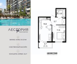 Продается квартира в жилом комплексе бизнес-класса "Лестория". В составе ЖК предусмотрена собственная аквазона площадью 473 квадратных метра с двумя подогреваемыми бассейнами, что соответствуют стандартам бизнес-класса. Аквазона объединяет взрослый и детский бассейны. В welcome-zone к услугам посетителей шезлонги и все необходимые принадлежности. Раздевалки с душевыми комнатами, инфракрасная сауна — здесь все предусмотрено для комфортного отдыха и полного расслабления. Для водного комплекса продуман отдельный вход, оборудованный системой контроля и управления доступом (СКУД). Аквазона только часть уникальной инфраструктуры "Лестории", которая включает в себя также благоустроенную территорию с пятьюдесятью функциональными зонами для прогулок, отдыха и занятий спортом, видовые террасы на крышах для отдыха, работы и встреч с друзьями, а также пространство набережной Кудепсты с шезлонгами и перголами. Жилой комплекс "Лестория" состоит из шести домов высотностью от 15 до 17 этажей, окружённых зеленым массивом национального парка. На придомовой территории для жителей предусмотрены закрытые дворы с круглосуточным видеонаблюдением, активити-центр для детей и подростков, тихие зоны для отдыха и медитации. На крышах домов будут созданы зеленые террасы для наслаждения прекрасными видами на море и горы. В проекте предусмотрены разные варианты отделки квартир под потребности покупателей. Тем, кто хочет воплотить в жизнь собственные интерьерные задумки, подойдут квартиры без ремонта. Для комфортной жизни и отдыха в комплексе будет работать круглосуточный консьерж-сервис уровня 5*, который с легкостью закроет все ежедневные потребности: от заказа продуктов и встречи гостей в аэропорту до выгула и дрессировки питомца. К услугам жителей ЖК "Лестория" — собственная управляющая компания, для инвесторов предоставляются услуги доверительного управления.