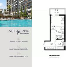 Продается квартира в жилом комплексе бизнес-класса "Лестория". В составе ЖК предусмотрена собственная аквазона площадью 473 квадратных метра с двумя подогреваемыми бассейнами, что соответствуют стандартам бизнес-класса. Аквазона объединяет взрослый и детский бассейны. В welcome-zone к услугам посетителей шезлонги и все необходимые принадлежности. Раздевалки с душевыми комнатами, инфракрасная сауна — здесь все предусмотрено для комфортного отдыха и полного расслабления. Для водного комплекса продуман отдельный вход, оборудованный системой контроля и управления доступом (СКУД). Аквазона только часть уникальной инфраструктуры "Лестории", которая включает в себя также благоустроенную территорию с пятьюдесятью функциональными зонами для прогулок, отдыха и занятий спортом, видовые террасы на крышах для отдыха, работы и встреч с друзьями, а также пространство набережной Кудепсты с шезлонгами и перголами. Жилой комплекс "Лестория" состоит из шести домов высотностью от 15 до 17 этажей, окружённых зеленым массивом национального парка. На придомовой территории для жителей предусмотрены закрытые дворы с круглосуточным видеонаблюдением, активити-центр для детей и подростков, тихие зоны для отдыха и медитации. На крышах домов будут созданы зеленые террасы для наслаждения прекрасными видами на море и горы. В проекте предусмотрены разные варианты отделки квартир под потребности покупателей. Тем, кто хочет воплотить в жизнь собственные интерьерные задумки, подойдут квартиры без ремонта. Для комфортной жизни и отдыха в комплексе будет работать круглосуточный консьерж-сервис уровня 5*, который с легкостью закроет все ежедневные потребности: от заказа продуктов и встречи гостей в аэропорту до выгула и дрессировки питомца. К услугам жителей ЖК "Лестория" — собственная управляющая компания, для инвесторов предоставляются услуги доверительного управления.