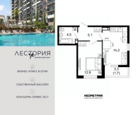 Продается квартира в жилом комплексе бизнес-класса "Лестория". В составе ЖК предусмотрена собственная аквазона площадью 473 квадратных метра с двумя подогреваемыми бассейнами, что соответствуют стандартам бизнес-класса. Аквазона объединяет взрослый и детский бассейны. В welcome-zone к услугам посетителей шезлонги и все необходимые принадлежности. Раздевалки с душевыми комнатами, инфракрасная сауна — здесь все предусмотрено для комфортного отдыха и полного расслабления. Для водного комплекса продуман отдельный вход, оборудованный системой контроля и управления доступом (СКУД). Аквазона только часть уникальной инфраструктуры "Лестории", которая включает в себя также благоустроенную территорию с пятьюдесятью функциональными зонами для прогулок, отдыха и занятий спортом, видовые террасы на крышах для отдыха, работы и встреч с друзьями, а также пространство набережной Кудепсты с шезлонгами и перголами. Жилой комплекс "Лестория" состоит из шести домов высотностью от 15 до 17 этажей, окружённых зеленым массивом национального парка. На придомовой территории для жителей предусмотрены закрытые дворы с круглосуточным видеонаблюдением, активити-центр для детей и подростков, тихие зоны для отдыха и медитации. На крышах домов будут созданы зеленые террасы для наслаждения прекрасными видами на море и горы. В проекте предусмотрены разные варианты отделки квартир под потребности покупателей. Тем, кто хочет воплотить в жизнь собственные интерьерные задумки, подойдут квартиры без ремонта. Для комфортной жизни и отдыха в комплексе будет работать круглосуточный консьерж-сервис уровня 5*, который с легкостью закроет все ежедневные потребности: от заказа продуктов и встречи гостей в аэропорту до выгула и дрессировки питомца. К услугам жителей ЖК "Лестория" — собственная управляющая компания, для инвесторов предоставляются услуги доверительного управления.