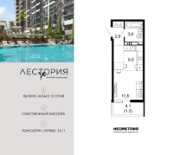 Продается квартира в жилом комплексе бизнес-класса "Лестория". В составе ЖК предусмотрена собственная аквазона площадью 473 квадратных метра с двумя подогреваемыми бассейнами, что соответствуют стандартам бизнес-класса. Аквазона объединяет взрослый и детский бассейны. В welcome-zone к услугам посетителей шезлонги и все необходимые принадлежности. Раздевалки с душевыми комнатами, инфракрасная сауна — здесь все предусмотрено для комфортного отдыха и полного расслабления. Для водного комплекса продуман отдельный вход, оборудованный системой контроля и управления доступом (СКУД). Аквазона только часть уникальной инфраструктуры "Лестории", которая включает в себя также благоустроенную территорию с пятьюдесятью функциональными зонами для прогулок, отдыха и занятий спортом, видовые террасы на крышах для отдыха, работы и встреч с друзьями, а также пространство набережной Кудепсты с шезлонгами и перголами. Жилой комплекс "Лестория" состоит из шести домов высотностью от 15 до 17 этажей, окружённых зеленым массивом национального парка. На придомовой территории для жителей предусмотрены закрытые дворы с круглосуточным видеонаблюдением, активити-центр для детей и подростков, тихие зоны для отдыха и медитации. На крышах домов будут созданы зеленые террасы для наслаждения прекрасными видами на море и горы. В проекте предусмотрены разные варианты отделки квартир под потребности покупателей. Тем, кто хочет воплотить в жизнь собственные интерьерные задумки, подойдут квартиры без ремонта. Для комфортной жизни и отдыха в комплексе будет работать круглосуточный консьерж-сервис уровня 5*, который с легкостью закроет все ежедневные потребности: от заказа продуктов и встречи гостей в аэропорту до выгула и дрессировки питомца. К услугам жителей ЖК "Лестория" — собственная управляющая компания, для инвесторов предоставляются услуги доверительного управления.