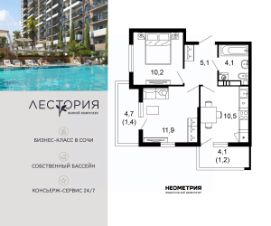 Продается квартира в жилом комплексе бизнес-класса "Лестория". В составе ЖК предусмотрена собственная аквазона площадью 473 квадратных метра с двумя подогреваемыми бассейнами, что соответствуют стандартам бизнес-класса. Аквазона объединяет взрослый и детский бассейны. В welcome-zone к услугам посетителей шезлонги и все необходимые принадлежности. Раздевалки с душевыми комнатами, инфракрасная сауна — здесь все предусмотрено для комфортного отдыха и полного расслабления. Для водного комплекса продуман отдельный вход, оборудованный системой контроля и управления доступом (СКУД). Аквазона только часть уникальной инфраструктуры "Лестории", которая включает в себя также благоустроенную территорию с пятьюдесятью функциональными зонами для прогулок, отдыха и занятий спортом, видовые террасы на крышах для отдыха, работы и встреч с друзьями, а также пространство набережной Кудепсты с шезлонгами и перголами. Жилой комплекс "Лестория" состоит из шести домов высотностью от 15 до 17 этажей, окружённых зеленым массивом национального парка. На придомовой территории для жителей предусмотрены закрытые дворы с круглосуточным видеонаблюдением, активити-центр для детей и подростков, тихие зоны для отдыха и медитации. На крышах домов будут созданы зеленые террасы для наслаждения прекрасными видами на море и горы. В проекте предусмотрены разные варианты отделки квартир под потребности покупателей. Тем, кто хочет воплотить в жизнь собственные интерьерные задумки, подойдут квартиры без ремонта. Для комфортной жизни и отдыха в комплексе будет работать круглосуточный консьерж-сервис уровня 5*, который с легкостью закроет все ежедневные потребности: от заказа продуктов и встречи гостей в аэропорту до выгула и дрессировки питомца. К услугам жителей ЖК "Лестория" — собственная управляющая компания, для инвесторов предоставляются услуги доверительного управления.