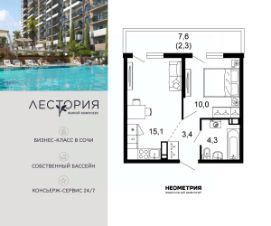 Продается квартира в жилом комплексе бизнес-класса "Лестория". В составе ЖК предусмотрена собственная аквазона площадью 473 квадратных метра с двумя подогреваемыми бассейнами, что соответствуют стандартам бизнес-класса. Аквазона объединяет взрослый и детский бассейны. В welcome-zone к услугам посетителей шезлонги и все необходимые принадлежности. Раздевалки с душевыми комнатами, инфракрасная сауна — здесь все предусмотрено для комфортного отдыха и полного расслабления. Для водного комплекса продуман отдельный вход, оборудованный системой контроля и управления доступом (СКУД). Аквазона только часть уникальной инфраструктуры "Лестории", которая включает в себя также благоустроенную территорию с пятьюдесятью функциональными зонами для прогулок, отдыха и занятий спортом, видовые террасы на крышах для отдыха, работы и встреч с друзьями, а также пространство набережной Кудепсты с шезлонгами и перголами. Жилой комплекс "Лестория" состоит из шести домов высотностью от 15 до 17 этажей, окружённых зеленым массивом национального парка. На придомовой территории для жителей предусмотрены закрытые дворы с круглосуточным видеонаблюдением, активити-центр для детей и подростков, тихие зоны для отдыха и медитации. На крышах домов будут созданы зеленые террасы для наслаждения прекрасными видами на море и горы. В проекте предусмотрены разные варианты отделки квартир под потребности покупателей. Тем, кто хочет воплотить в жизнь собственные интерьерные задумки, подойдут квартиры без ремонта. Для комфортной жизни и отдыха в комплексе будет работать круглосуточный консьерж-сервис уровня 5*, который с легкостью закроет все ежедневные потребности: от заказа продуктов и встречи гостей в аэропорту до выгула и дрессировки питомца. К услугам жителей ЖК "Лестория" — собственная управляющая компания, для инвесторов предоставляются услуги доверительного управления.