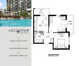 Продается квартира в жилом комплексе бизнес-класса "Лестория". В составе ЖК предусмотрена собственная аквазона площадью 473 квадратных метра с двумя подогреваемыми бассейнами, что соответствуют стандартам бизнес-класса. Аквазона объединяет взрослый и детский бассейны. В welcome-zone к услугам посетителей шезлонги и все необходимые принадлежности. Раздевалки с душевыми комнатами, инфракрасная сауна — здесь все предусмотрено для комфортного отдыха и полного расслабления. Для водного комплекса продуман отдельный вход, оборудованный системой контроля и управления доступом (СКУД). Аквазона только часть уникальной инфраструктуры "Лестории", которая включает в себя также благоустроенную территорию с пятьюдесятью функциональными зонами для прогулок, отдыха и занятий спортом, видовые террасы на крышах для отдыха, работы и встреч с друзьями, а также пространство набережной Кудепсты с шезлонгами и перголами. Жилой комплекс "Лестория" состоит из шести домов высотностью от 15 до 17 этажей, окружённых зеленым массивом национального парка. На придомовой территории для жителей предусмотрены закрытые дворы с круглосуточным видеонаблюдением, активити-центр для детей и подростков, тихие зоны для отдыха и медитации. На крышах домов будут созданы зеленые террасы для наслаждения прекрасными видами на море и горы. В проекте предусмотрены разные варианты отделки квартир под потребности покупателей. Тем, кто хочет воплотить в жизнь собственные интерьерные задумки, подойдут квартиры без ремонта. Для комфортной жизни и отдыха в комплексе будет работать круглосуточный консьерж-сервис уровня 5*, который с легкостью закроет все ежедневные потребности: от заказа продуктов и встречи гостей в аэропорту до выгула и дрессировки питомца. К услугам жителей ЖК "Лестория" — собственная управляющая компания, для инвесторов предоставляются услуги доверительного управления.