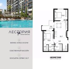 Продается квартира в жилом комплексе бизнес-класса "Лестория". В составе ЖК предусмотрена собственная аквазона площадью 473 квадратных метра с двумя подогреваемыми бассейнами, что соответствуют стандартам бизнес-класса. Аквазона объединяет взрослый и детский бассейны. В welcome-zone к услугам посетителей шезлонги и все необходимые принадлежности. Раздевалки с душевыми комнатами, инфракрасная сауна — здесь все предусмотрено для комфортного отдыха и полного расслабления. Для водного комплекса продуман отдельный вход, оборудованный системой контроля и управления доступом (СКУД). Аквазона только часть уникальной инфраструктуры "Лестории", которая включает в себя также благоустроенную территорию с пятьюдесятью функциональными зонами для прогулок, отдыха и занятий спортом, видовые террасы на крышах для отдыха, работы и встреч с друзьями, а также пространство набережной Кудепсты с шезлонгами и перголами. Жилой комплекс "Лестория" состоит из шести домов высотностью от 15 до 17 этажей, окружённых зеленым массивом национального парка. На придомовой территории для жителей предусмотрены закрытые дворы с круглосуточным видеонаблюдением, активити-центр для детей и подростков, тихие зоны для отдыха и медитации. На крышах домов будут созданы зеленые террасы для наслаждения прекрасными видами на море и горы. В проекте предусмотрены разные варианты отделки квартир под потребности покупателей. Тем, кто хочет воплотить в жизнь собственные интерьерные задумки, подойдут квартиры без ремонта. Для комфортной жизни и отдыха в комплексе будет работать круглосуточный консьерж-сервис уровня 5*, который с легкостью закроет все ежедневные потребности: от заказа продуктов и встречи гостей в аэропорту до выгула и дрессировки питомца. К услугам жителей ЖК "Лестория" — собственная управляющая компания, для инвесторов предоставляются услуги доверительного управления.