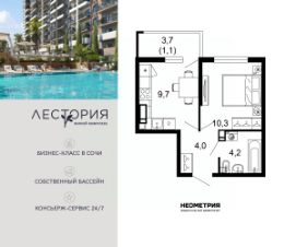 Продается квартира в жилом комплексе бизнес-класса "Лестория". В составе ЖК предусмотрена собственная аквазона площадью 473 квадратных метра с двумя подогреваемыми бассейнами, что соответствуют стандартам бизнес-класса. Аквазона объединяет взрослый и детский бассейны. В welcome-zone к услугам посетителей шезлонги и все необходимые принадлежности. Раздевалки с душевыми комнатами, инфракрасная сауна — здесь все предусмотрено для комфортного отдыха и полного расслабления. Для водного комплекса продуман отдельный вход, оборудованный системой контроля и управления доступом (СКУД). Аквазона только часть уникальной инфраструктуры "Лестории", которая включает в себя также благоустроенную территорию с пятьюдесятью функциональными зонами для прогулок, отдыха и занятий спортом, видовые террасы на крышах для отдыха, работы и встреч с друзьями, а также пространство набережной Кудепсты с шезлонгами и перголами. Жилой комплекс "Лестория" состоит из шести домов высотностью от 15 до 17 этажей, окружённых зеленым массивом национального парка. На придомовой территории для жителей предусмотрены закрытые дворы с круглосуточным видеонаблюдением, активити-центр для детей и подростков, тихие зоны для отдыха и медитации. На крышах домов будут созданы зеленые террасы для наслаждения прекрасными видами на море и горы. В проекте предусмотрены разные варианты отделки квартир под потребности покупателей. Тем, кто хочет воплотить в жизнь собственные интерьерные задумки, подойдут квартиры без ремонта. Для комфортной жизни и отдыха в комплексе будет работать круглосуточный консьерж-сервис уровня 5*, который с легкостью закроет все ежедневные потребности: от заказа продуктов и встречи гостей в аэропорту до выгула и дрессировки питомца. К услугам жителей ЖК "Лестория" — собственная управляющая компания, для инвесторов предоставляются услуги доверительного управления.