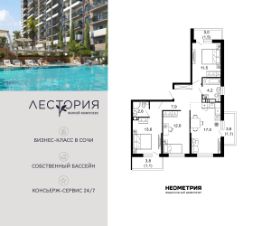 Продается квартира в жилом комплексе бизнес-класса "Лестория". В составе ЖК предусмотрена собственная аквазона площадью 473 квадратных метра с двумя подогреваемыми бассейнами, что соответствуют стандартам бизнес-класса. Аквазона объединяет взрослый и детский бассейны. В welcome-zone к услугам посетителей шезлонги и все необходимые принадлежности. Раздевалки с душевыми комнатами, инфракрасная сауна — здесь все предусмотрено для комфортного отдыха и полного расслабления. Для водного комплекса продуман отдельный вход, оборудованный системой контроля и управления доступом (СКУД). Аквазона только часть уникальной инфраструктуры "Лестории", которая включает в себя также благоустроенную территорию с пятьюдесятью функциональными зонами для прогулок, отдыха и занятий спортом, видовые террасы на крышах для отдыха, работы и встреч с друзьями, а также пространство набережной Кудепсты с шезлонгами и перголами. Жилой комплекс "Лестория" состоит из шести домов высотностью от 15 до 17 этажей, окружённых зеленым массивом национального парка. На придомовой территории для жителей предусмотрены закрытые дворы с круглосуточным видеонаблюдением, активити-центр для детей и подростков, тихие зоны для отдыха и медитации. На крышах домов будут созданы зеленые террасы для наслаждения прекрасными видами на море и горы. В проекте предусмотрены разные варианты отделки квартир под потребности покупателей. Тем, кто хочет воплотить в жизнь собственные интерьерные задумки, подойдут квартиры без ремонта. Для комфортной жизни и отдыха в комплексе будет работать круглосуточный консьерж-сервис уровня 5*, который с легкостью закроет все ежедневные потребности: от заказа продуктов и встречи гостей в аэропорту до выгула и дрессировки питомца. К услугам жителей ЖК "Лестория" — собственная управляющая компания, для инвесторов предоставляются услуги доверительного управления.