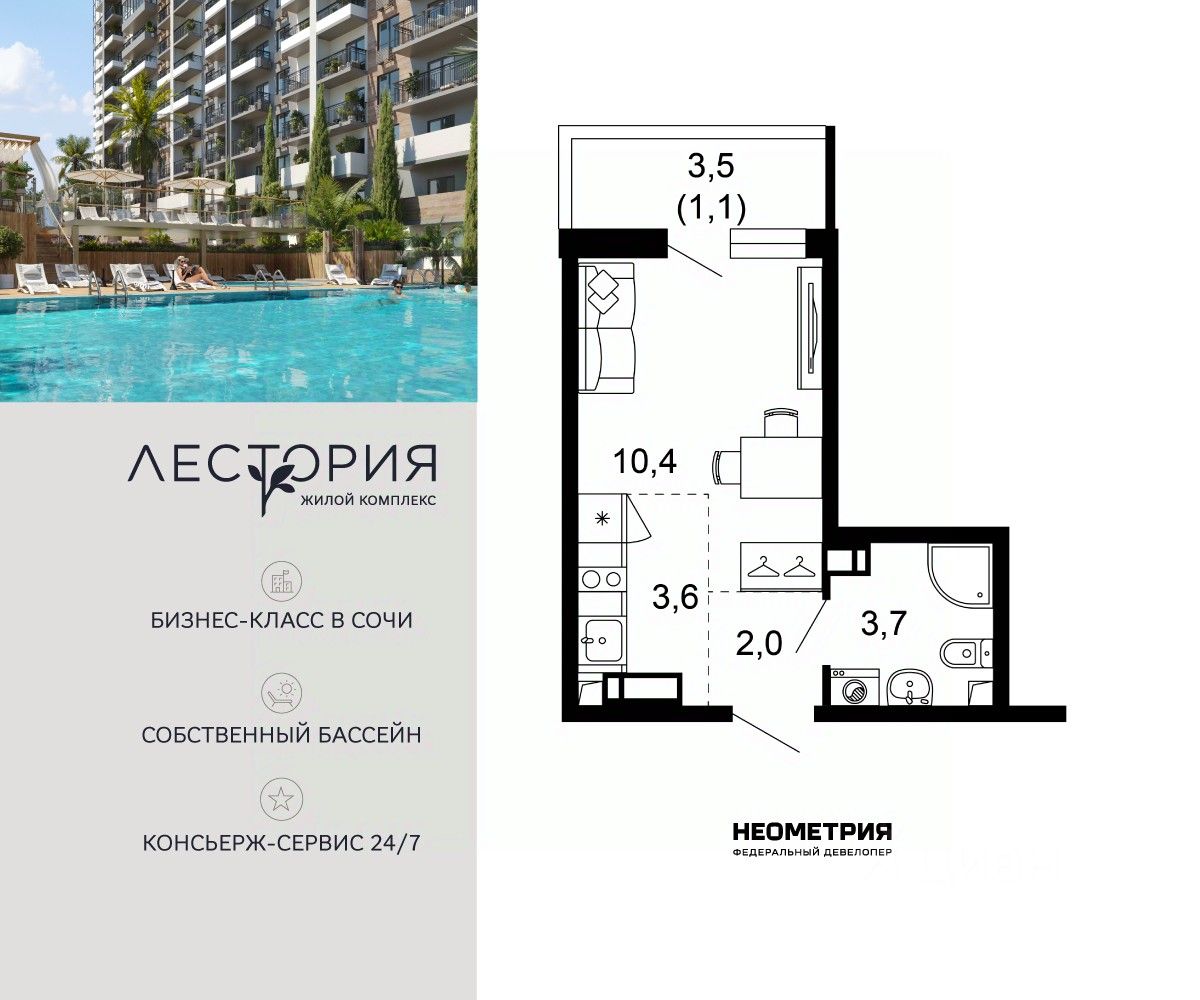 Продается квартира в жилом комплексе бизнес-класса "Лестория". В составе ЖК предусмотрена собственная аквазона площадью 473 квадратных метра с двумя подогреваемыми бассейнами, что соответствуют стандартам бизнес-класса. Аквазона объединяет взрослый и детский бассейны. В welcome-zone к услугам посетителей шезлонги и все необходимые принадлежности. Раздевалки с душевыми комнатами, инфракрасная сауна — здесь все предусмотрено для комфортного отдыха и полного расслабления. Для водного комплекса продуман отдельный вход, оборудованный системой контроля и управления доступом (СКУД). Аквазона только часть уникальной инфраструктуры "Лестории", которая включает в себя также благоустроенную территорию с пятьюдесятью функциональными зонами для прогулок, отдыха и занятий спортом, видовые террасы на крышах для отдыха, работы и встреч с друзьями, а также пространство набережной Кудепсты с шезлонгами и перголами. Жилой комплекс "Лестория" состоит из шести домов высотностью от 15 до 17 этажей, окружённых зеленым массивом национального парка. На придомовой территории для жителей предусмотрены закрытые дворы с круглосуточным видеонаблюдением, активити-центр для детей и подростков, тихие зоны для отдыха и медитации. На крышах домов будут созданы зеленые террасы для наслаждения прекрасными видами на море и горы. В проекте предусмотрены разные варианты отделки квартир под потребности покупателей. Тем, кто хочет воплотить в жизнь собственные интерьерные задумки, подойдут квартиры без ремонта. Для комфортной жизни и отдыха в комплексе будет работать круглосуточный консьерж-сервис уровня 5*, который с легкостью закроет все ежедневные потребности: от заказа продуктов и встречи гостей в аэропорту до выгула и дрессировки питомца. К услугам жителей ЖК "Лестория" — собственная управляющая компания, для инвесторов предоставляются услуги доверительного управления.