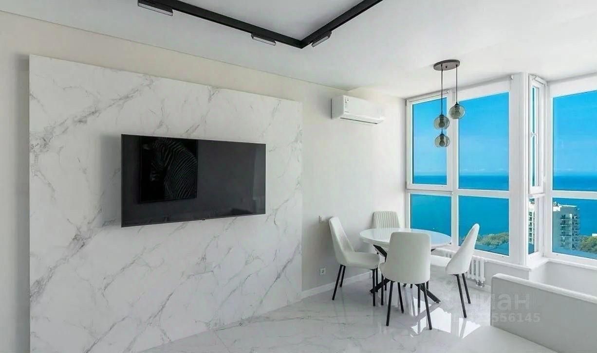 Представляю Вашему вниманию квартиру с панорамным видом на Морские просторы. Общая площадь 45м2: просторная кухня гостиная с панорамным остеклением, откуда открывается шикарный вид на море; выделенная спальная комната; гардеробная; совмещенный санузел.