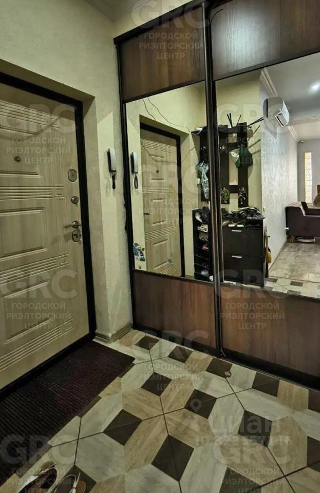 В коридоре предусмотрен большой встроенный шкаф с зеркальными фасадами. Балкон длиной 2 м оборудован козырьком и кронштейном для сушки белья, что делает его функциональным.