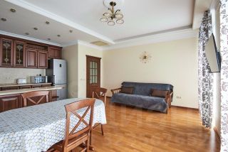 Вас ждет просторная планировка: две уютные спальни с комфортными кроватями, большая гостиная, объединенная с функциональной кухней, два санузла и удобная прихожая. В апартаментах есть все для беззаботной жизни: посудомоечная и стиральная машины, духовой шкаф и микроволновая печь, кофемашина и вся необходимая техника.