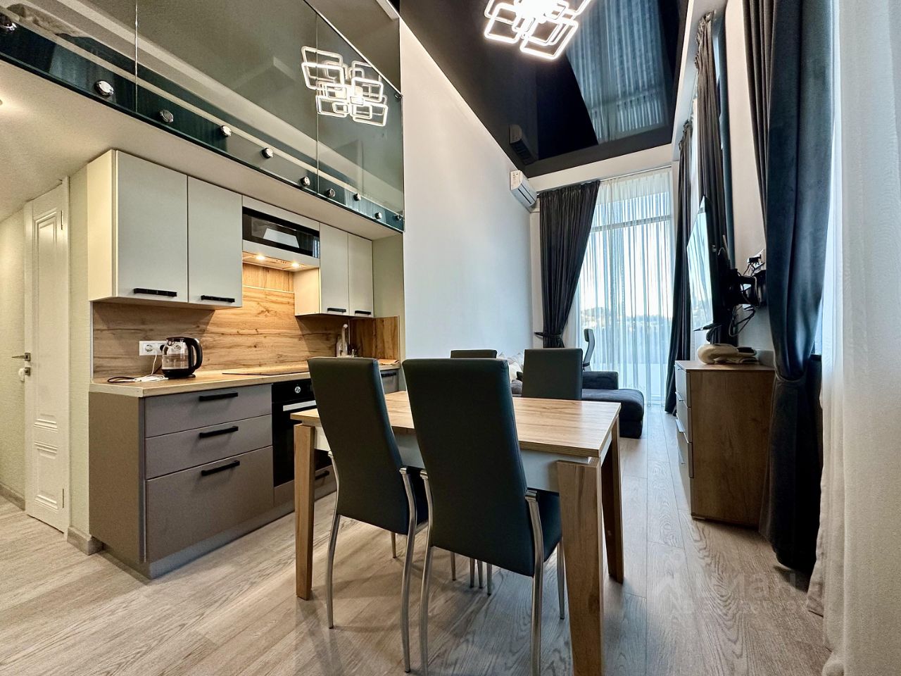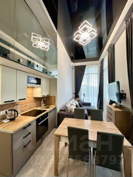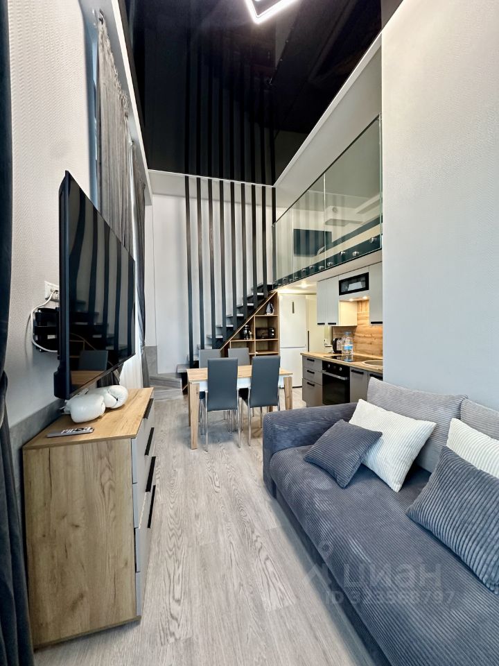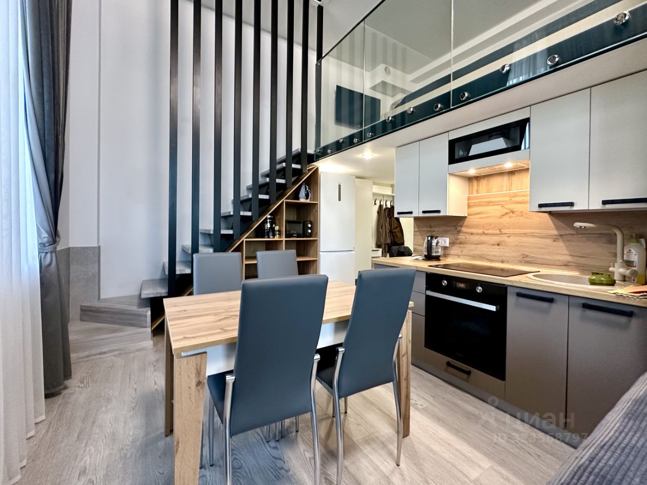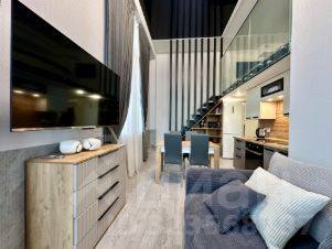 Замечательный двухуровневый апартамент. Выполнен стильный, дизайнерский ремонт. Имеется необходимая бытовая техника. Выполнен косметический ремонт в санузле, установлена новая душевая , раковина, зеркало с подсветкой и тд