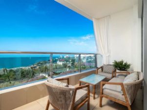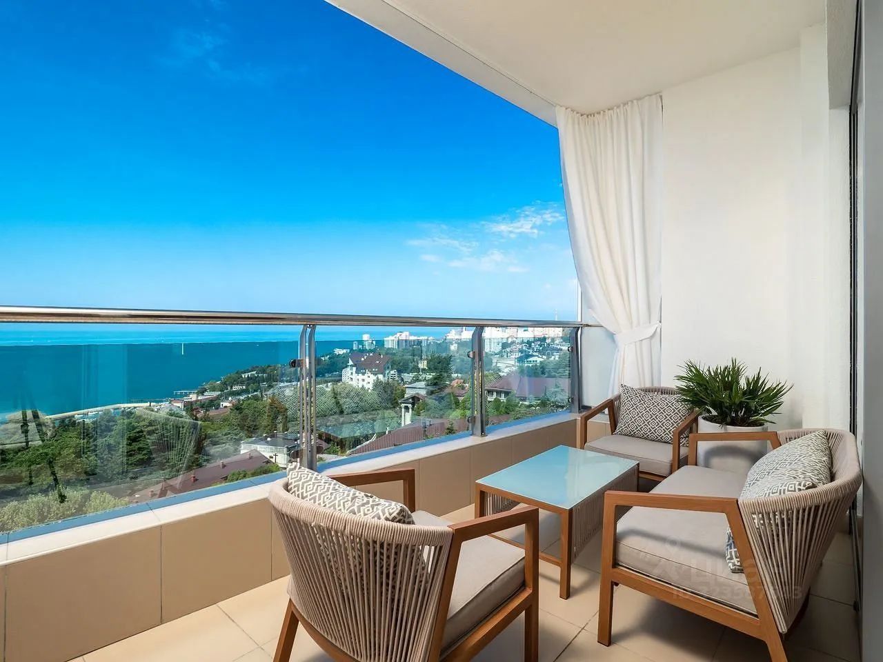 Вид, который завораживает: Широкие панорамные окна открывают непрерывную связь с природой — бескрайнее Черное море и динамичный силуэт города становятся частью вашего интерьера.