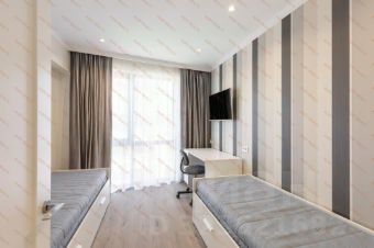 Изысканный интерьер, проработанный до мельчайших деталей, поразит даже самых взыскательных ценителей прекрасного. Основа дизайна элегантная современная классика. Комнаты обставлены мебелью из эксклюзивных коллекций известных брендов, установлена сантехника от Grohe, климатическое оборудование Daikin, бытовая техника Bosch. Использованы элитные итальянские светильники. Система теплых полов дополнительное преимущество.