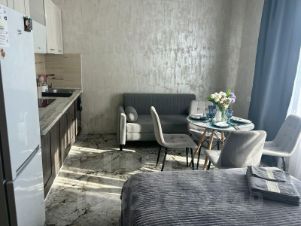 - Оборудованный кухонный гарнитур со всей необходимой посудой и техникой (микроволновая печь, электрический чайник, полноценный холодильник, варочная панель).