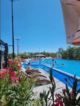 Территория комплекса включает в себя прогулочные дорожки по парку города, детские и спортивные площадки, а так же круглогодичный подогреваемый бассейн с зоной отдыха (шезлонги), а так же есть мангальные зоны, в общем можно отлично провести время и отдохнуть даже не покидая при домовую территорию.
