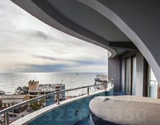 Комплекс построен по уникальному, единственному в Сочи австралийскому проекту. Архитектура домов волновыми изгибами балконов производит впечатление морского пейзажа, что идеально гармонирует с окружающей обстановкой.