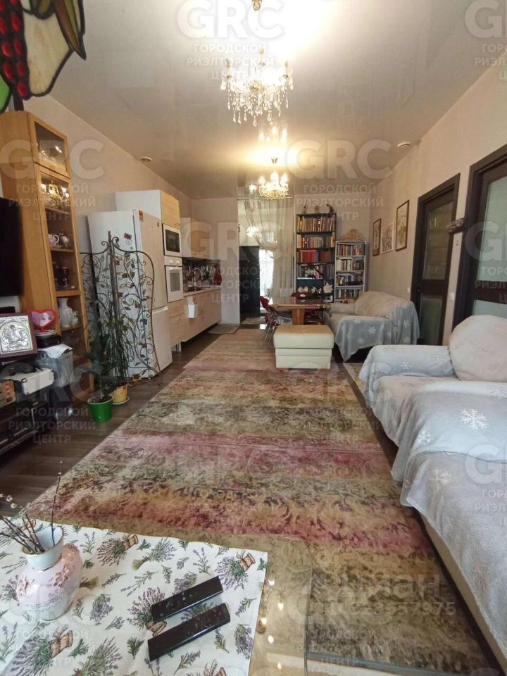 Общая площадь составляет 64.7 м², и расположена она на последнем восьмом этаже монолитного дома 2014 года постройки. Благодаря этому, из окон открывается захватывающий вид на город.