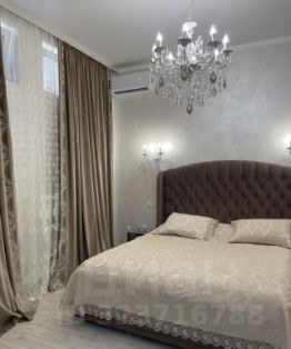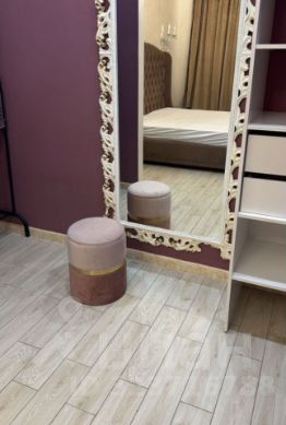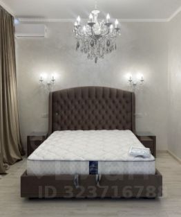 В спальне: большой телевизор, огромная кровать ASCONA, прикроватные тумбочки (2 штуки), стол, пуфик,гардеробная, зеркало ручной работы 3 метра, подсветка штор, светильники-бра, сплит система 2 шт