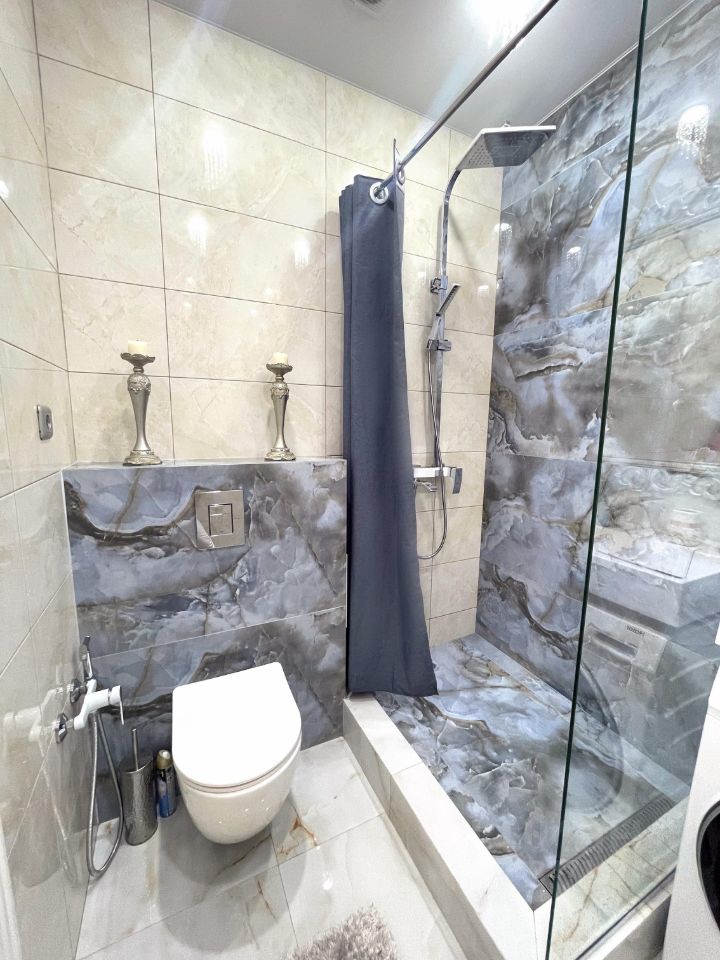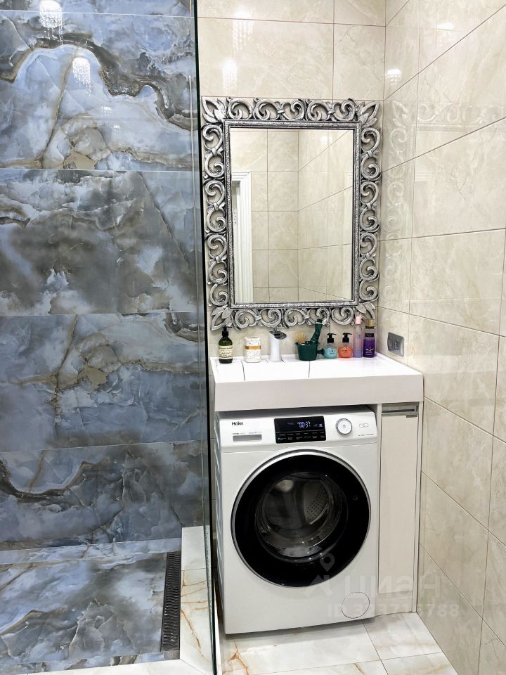 Душевая, зеркало ручной работы , стиральная машинка.