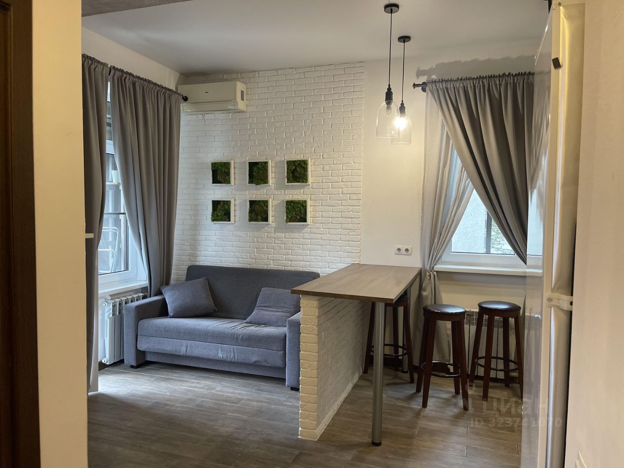 Просторная кухня - гостиная с 2 окнами и выходом на балкон