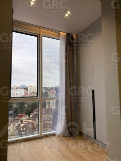 Квартира имеет кухню гостиную, спальню с панорамным остеклением, гардеробная, санузел совмещен. Ремонт дизайнерский, выполнен из высококачественных материалов. Вид во двор, тихо, спокойно.