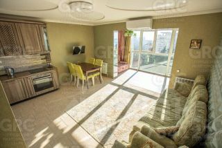 В квартире дизайнерский ремонт. В гостиной панорамные окна с шикарным видом на море. Имеются кондиционеры, и вся необходимая бытовая техника. Просторная спальня, огромная гостиная, прихожая, гардеробная, ванная комната с санузлом, душевая комната с санузлом, кладовая. В пространстве лоджии оборудованы спальные места для гостей.