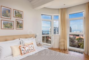 - эта светлая квартира наполняет атмосферу легкости и уюта. С огромными панорамными окнами, солнечные лучи свободно проникают внутрь, освещая все спальни. Пространство c тремя изолированными комнатами аккуратно оформлено в современном минималистском стиле с нейтральными оттенками стен и теплым натуральным деревянным полом из бамбука, создавая гармоничный фон для ярких акцентов в интерьере;