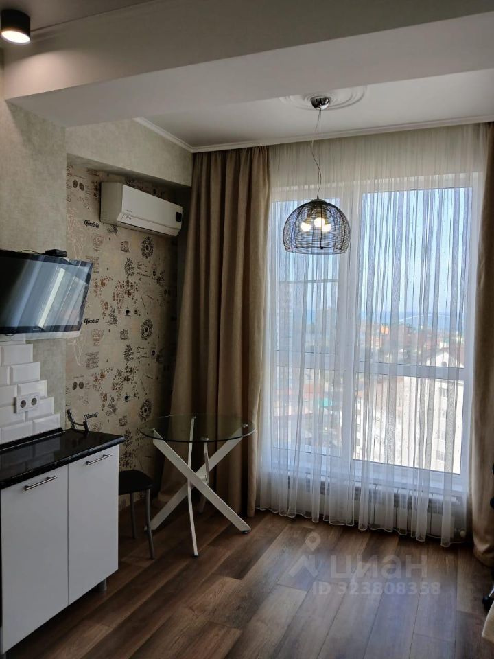 В квартире выполнен дизайнерский ремонт, который придаёт ей стильный и современный вид. Просторная студия включает зону кухни и отдыха, а также совмещенный санузел. Для удобства проживания предусмотрен балкон, где можно наслаждаться свежим воздухом и видом из окна.