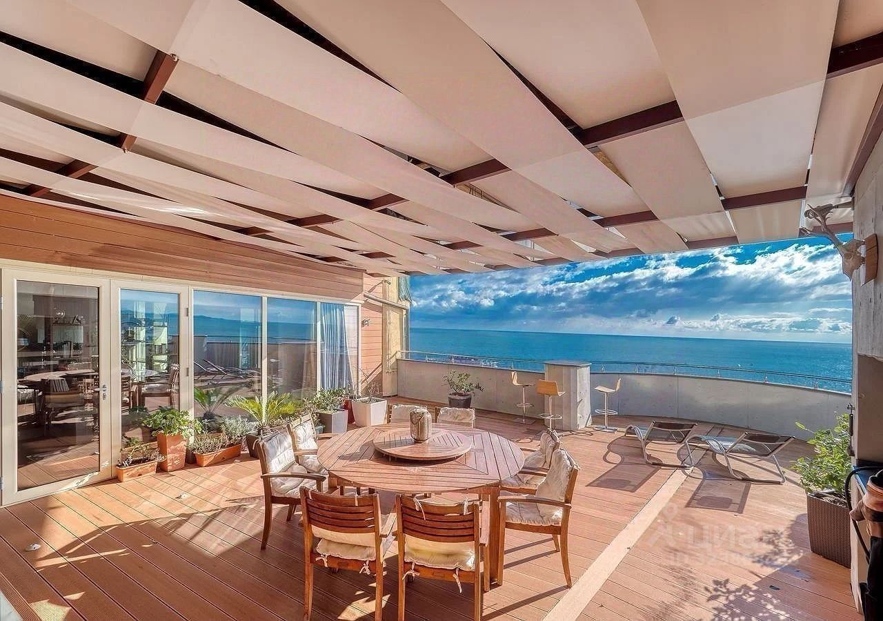Пентхаус расположен на видовой части дома, самая просторная планировка, выполнен новый качественный ремонт, есть огромная терраса с зоной отдыха и своей кухней. Все спальни имеют шикарный вид на море. В каждой комнате теплый пол и климат контроль.