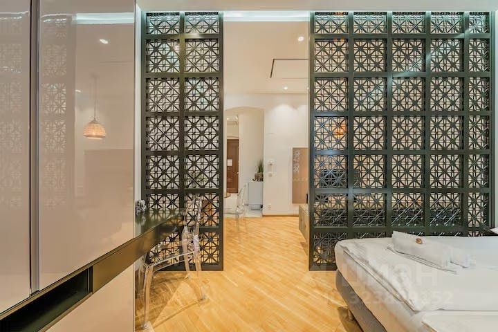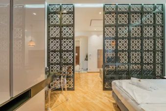 Студия с продуманной планировкой и удобным зонированием на кухонную, спальную зону и зону отдыха.
