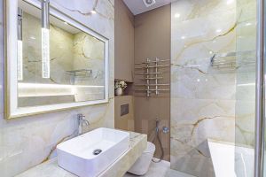• Полный набор современной техники: посудомоечная машина, духовой шкаф с СВЧ, стиральная машина, Smart-TV, робот-пылесос.