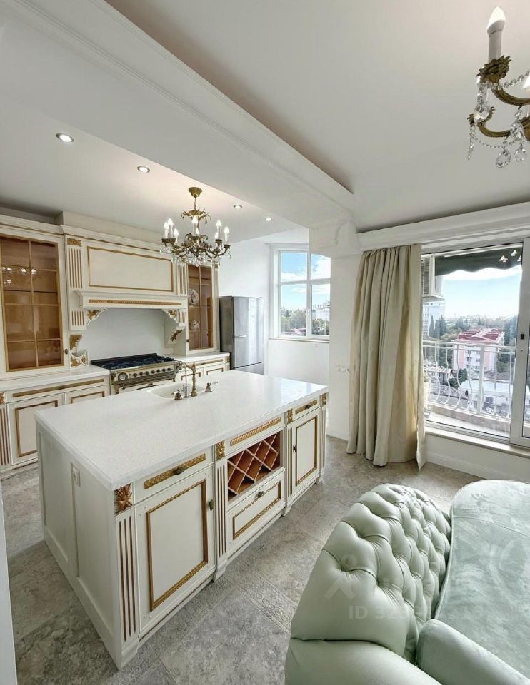 Площадь — 146 м². Просторная, светлая квартира с балконом по периметру, откуда открывается потрясающий вид на море и город.