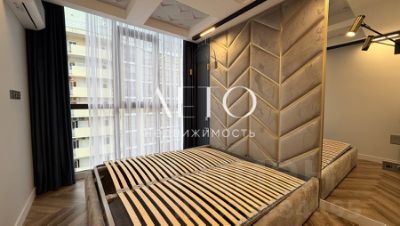 Авторский ремонт: Дорогие материалы (натуральный камень, паркет), панорамные окна, современная кухня-гостиная.