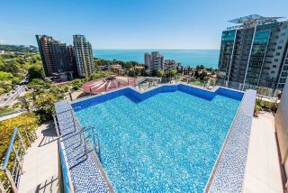 Представьте, как вы поднимаетесь на восемнадцатый этаж, где за панорамными окнами длиной три метра перед вами открывается завораживающая панорама — бескрайнее море, величественные горы и огни вечернего города. Этот пентхаус с бассейном станет вашим небесным убежищем, где каждая деталь создана для восхищения.