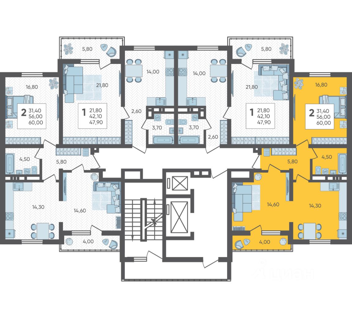 Продается 2-комнатная квартира в доме (Литер 5), срок сдачи : 3 кв. 2026, общей площадью 60 кв.м., на 5 этаже в новом современном жилом комплексе в Сочи "Горный квартал", Хостинский район. Отличный вариант для инвестиций и жизни.