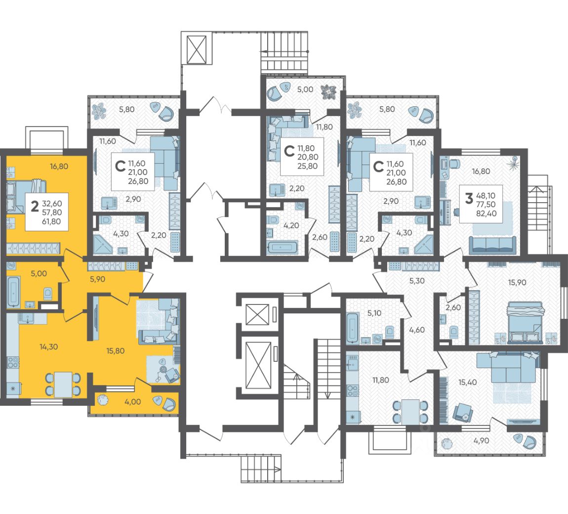 Продается 2-комнатная квартира в доме (Литер 1), срок сдачи : 3 кв. 2026, общей площадью 61.8 кв.м., на 1 этаже в новом современном жилом комплексе в Сочи "Горный квартал", Хостинский район. Отличный вариант для инвестиций и жизни.