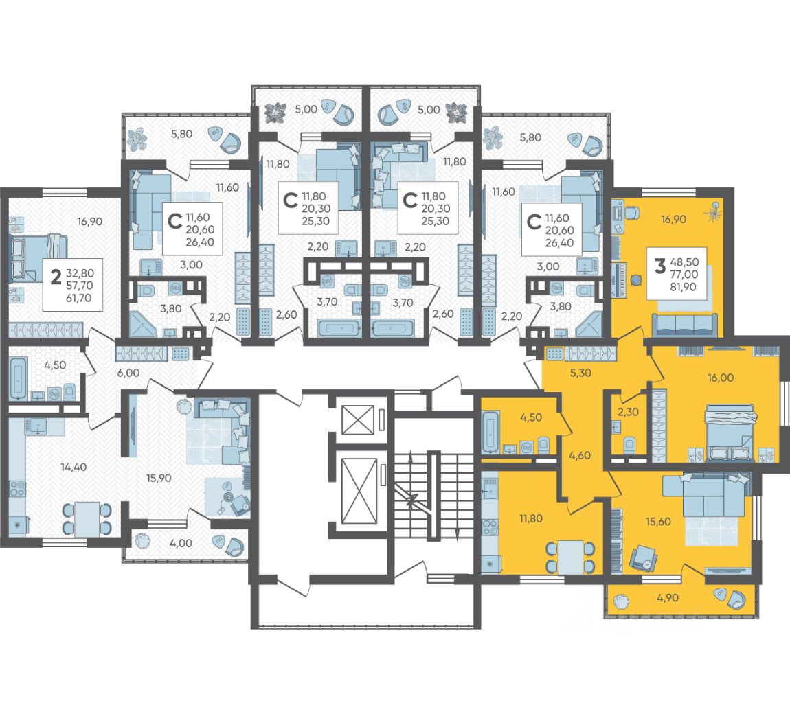 Продается 3-комнатная квартира в доме (Литер 1), срок сдачи : 3 кв. 2026, общей площадью 81.9 кв.м., на 10 этаже в новом современном жилом комплексе в Сочи "Горный квартал", Хостинский район. Отличный вариант для инвестиций и жизни.