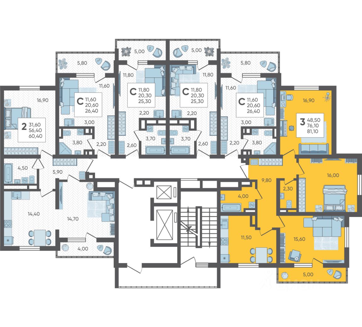 Продается 3-комнатная квартира в доме (Литер 4), срок сдачи : 3 кв. 2026, общей площадью 81.1 кв.м., на 7 этаже в новом современном жилом комплексе в Сочи "Горный квартал", Хостинский район. Отличный вариант для инвестиций и жизни.