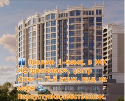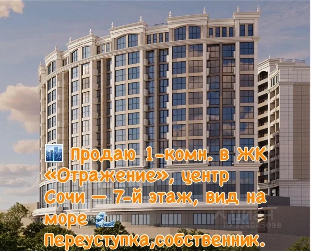 Продаю полноценную 1комнатную квартиру в ЖК Отражение (бизнескласс), центр Сочи. 7й этаж, вид на море. Собственник. Переуступка. Сдача комплекса — декабрь 2025 г. Цена — 17 500 000 ₽. Полная стоимость — в договоре. После сдачи цена повыситься! Отделка white box