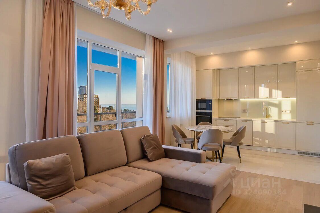Квартира с дизайнерским ремонтом под авторским надзором. Использованы дорогие материалы, итальянская мебель и немецкая техника — всё остаётся новому владельцу. Планировка удобная: две спальни и просторная кухня-гостиная с видом на море. Без обременений, один собственник.